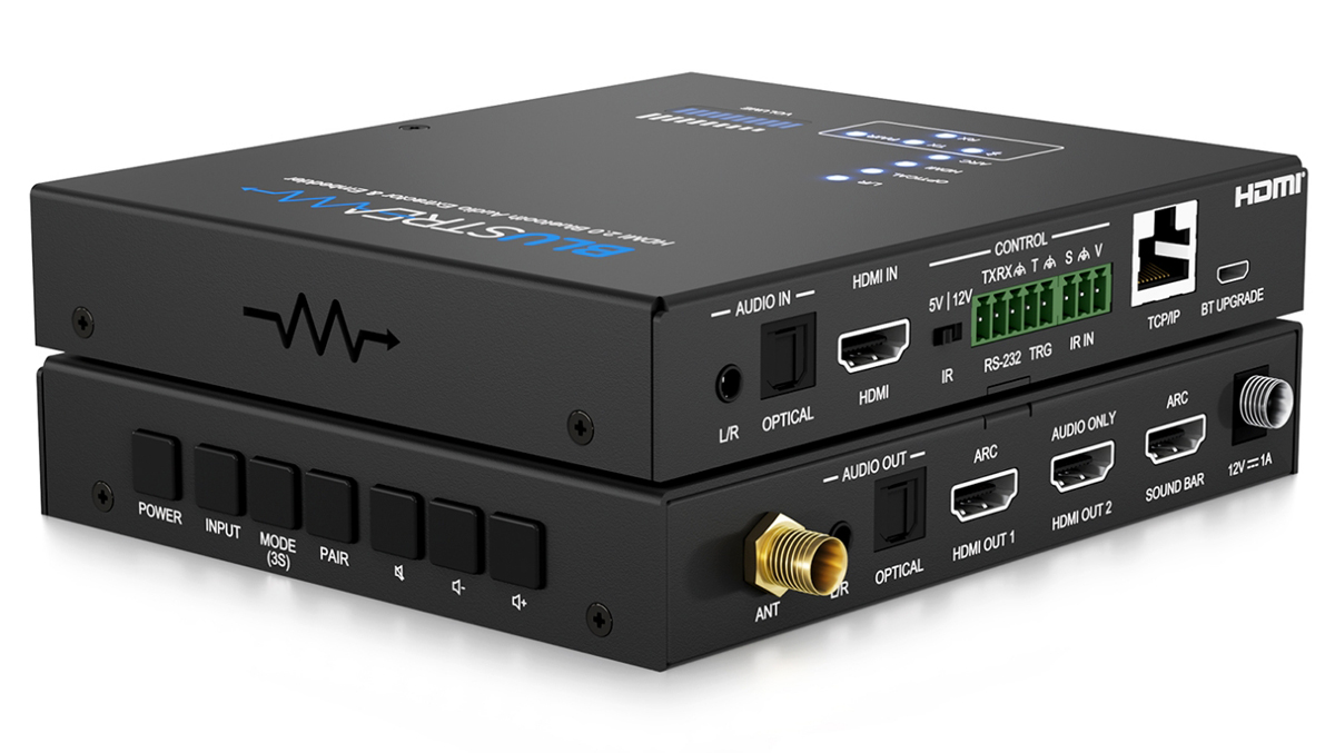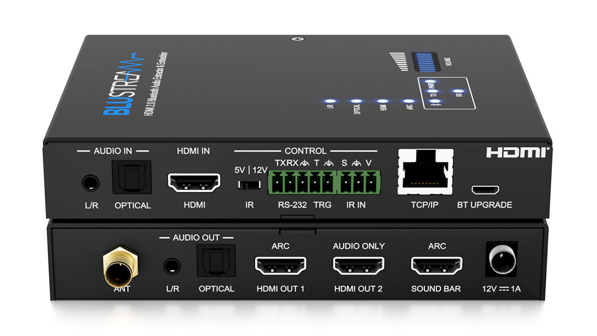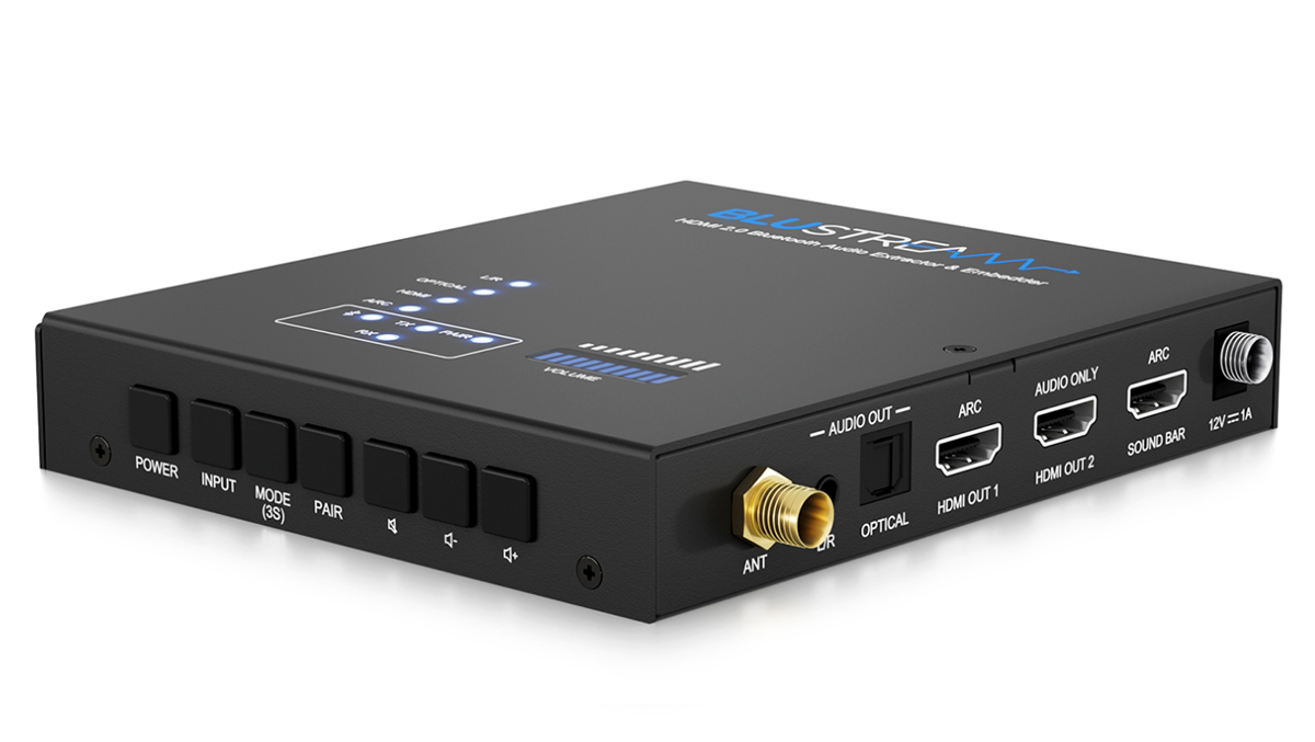 BLUARC je multiformátové audio prepínacie zariadenie určené na vkladanie alebo extrahovanie a smerovanie zvuku medzi rôznymi audio zdrojmi a prijímačmi, kde sa distribuuje HDMI video. Tento multivstupový audio prepínač podporuje vkladanie zvuku cez HDMI, externý analógový zvuk L/R, optický digitálny zvuk, zvuk Bluetooth a audio vstupy HDMI ARC, distribuované do rôznych audio zariadení cez Bluetooth, HDMI výstup, iba zvuk HDMI, HDMI ARC (t. j. soundbar), optický digitálny zvuk a analógové audio výstupy L/R. Vďaka viacerým možnostiam smerovania zvuku je BLUARC vhodný pre rezidenčné aj komerčné aplikácie, kde je potrebné pripojenie Bluetooth.