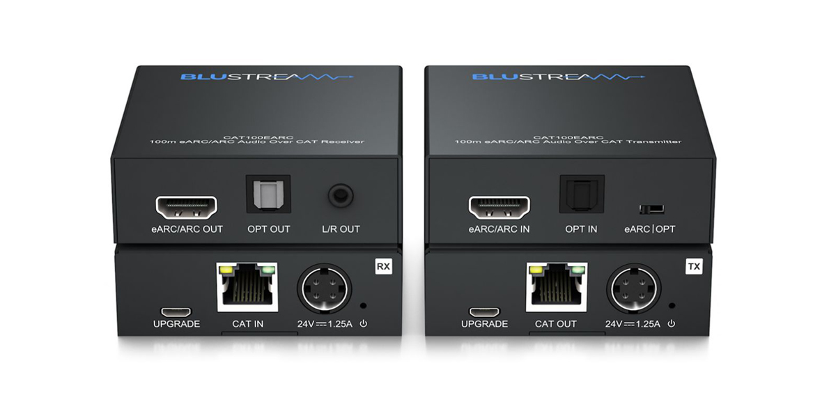 CAT100EARC cez CAT kábel prenáša signály HDMI eARC/ARC alebo optické digitálne audio až do vzdialenosti 200 m (signály eARC/ARC až do 100 m). Toto zariadenie typu „plug and play“ podporuje priechod CEC, keď je zvolený zvuk HDMI eARC/ARC, a má vstavaný DAC prevodník na prevod ktoréhokoľvek zo vstupov na stereo ľavý/pravý audio výstup.