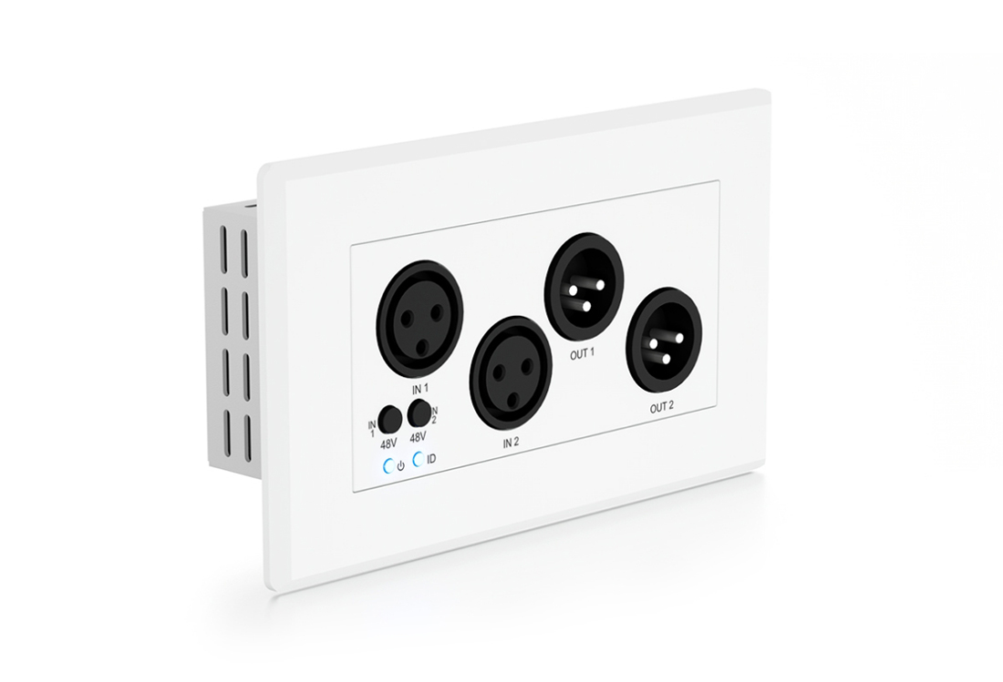 DA22XLR-WP-V2 je nástenný panel s viacerými vstupmi/výstupmi na konverziu analógového zvuku v rámci digitálneho sieťového audio systému Dante®. DA22XLR-WP má 2 vstupné kanály symetrického/ nesymetrického/mikrofónového zvuku s prepínateľným fantomovým napájaním 48V a 2 výstupné kanály symetrického/nesymetrického zvuku.