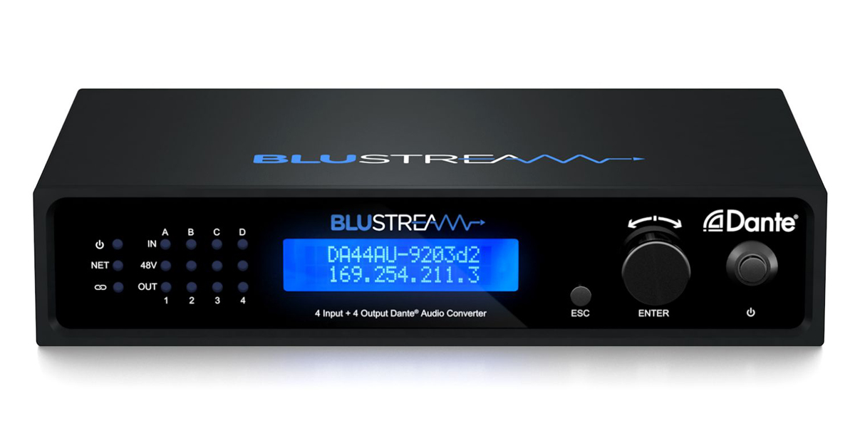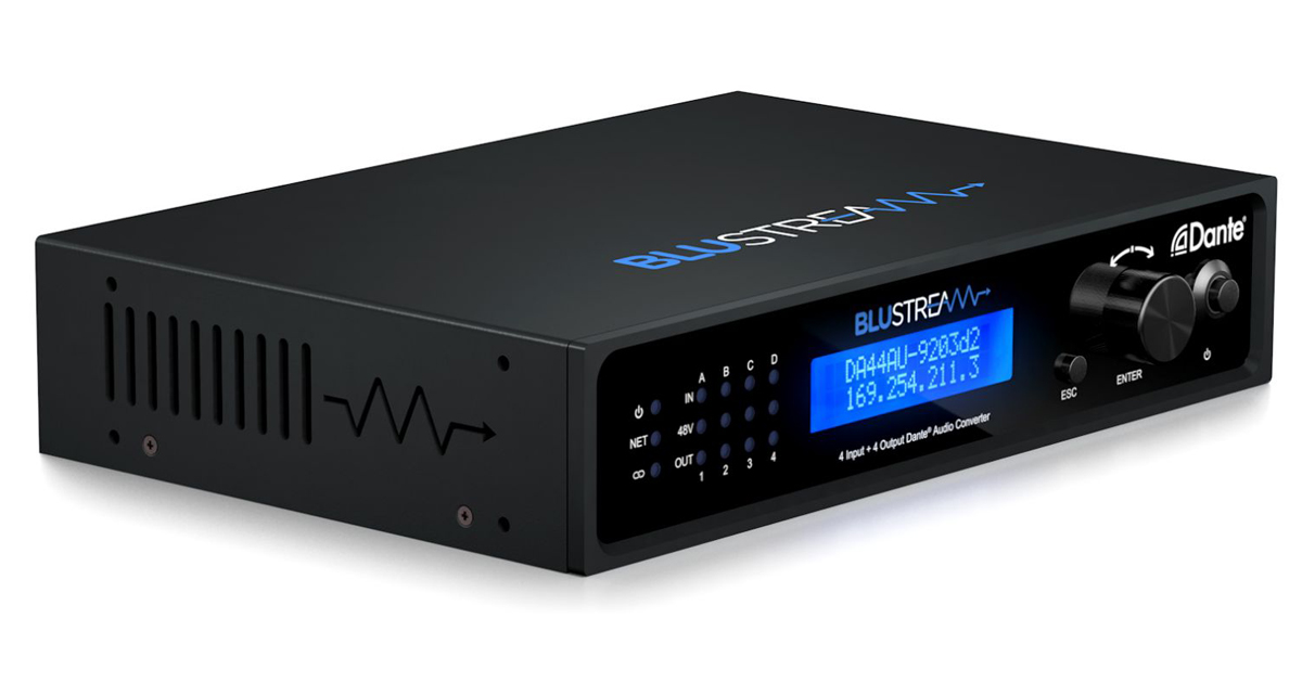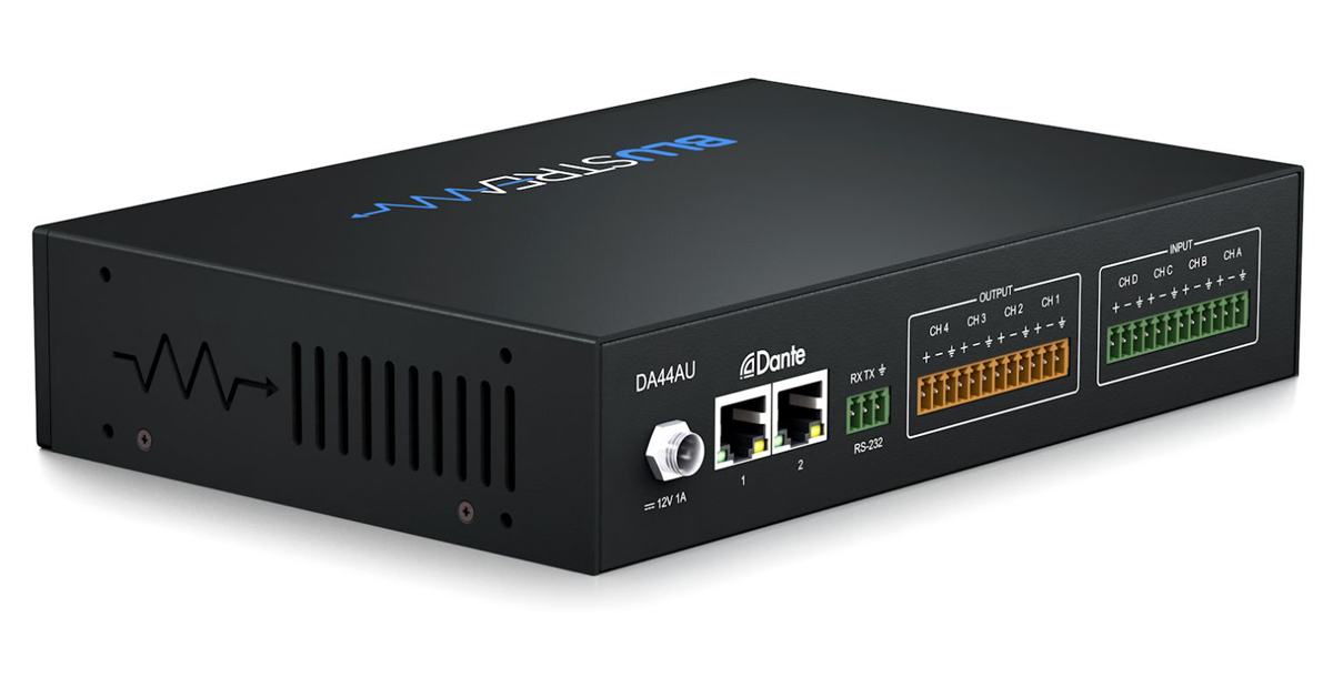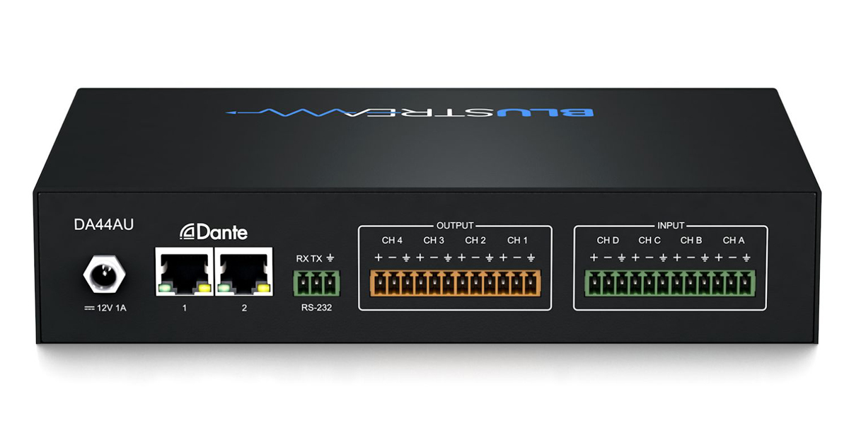 DA44AU je digitálny audio prevodník Dante® so štyrmi vstupmi / štyrmi výstupmi. DA44AU umožňuje pripojenie akéhokoľvek audio zdroja iného ako Dante®, ako sú mixážne pulty, ako audio zdroj v rámci siete Dante®, ako aj konverziu signálu Dante® späť na analógový audio signál. DA44AU podporuje symetrické aj nesymetrické audio, ako aj linkové mikrofónové vstupy vrátane fantómového napájania 48V. DA44AU podporuje audio prenos AES67 RTP.