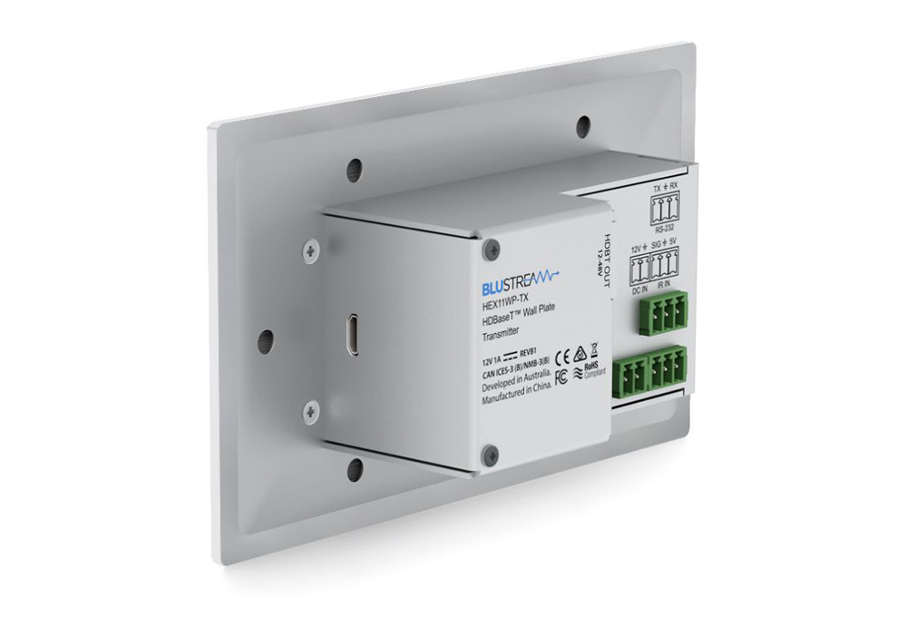 HEX11WP-TX bol navrhnutý tak, aby fungoval so všetkými prijímačmi Blustream HDBaseT™, mohol byť inštalovaný do inštalačných krabíc používaných v Spojenom kráľovstve aj v Európe a mohol byť napájaný lokálne alebo z kompatibilných produktov Blustream HDBaseT™.