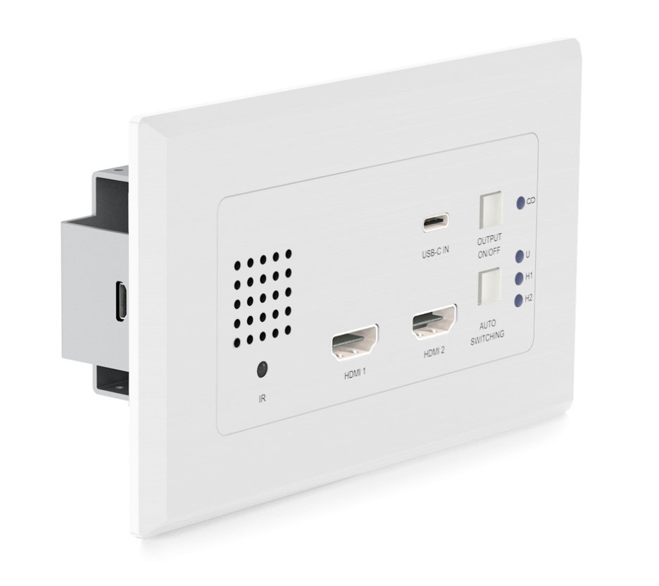 Nástenný vysielač HEX31WPW-TX HDMI/USB-C HDBaseT™ je multiformátové riešenie prepínača 4K vstupov, ktoré poskytuje vstupy HDMI a USB-C až do vzdialenosti 70 m pri rozlíšení 1080p (40m 4K 60Hz 4:2:0). HEX31WPW-TX ponúka manuálny alebo automatický výber zdroja a zahŕňa ovládanie zapnutia/vypnutia displeja cez CEC, RS-232 a IR (prostredníctvom kompatibilných prijímačov HDBaseT™ / Matrix).