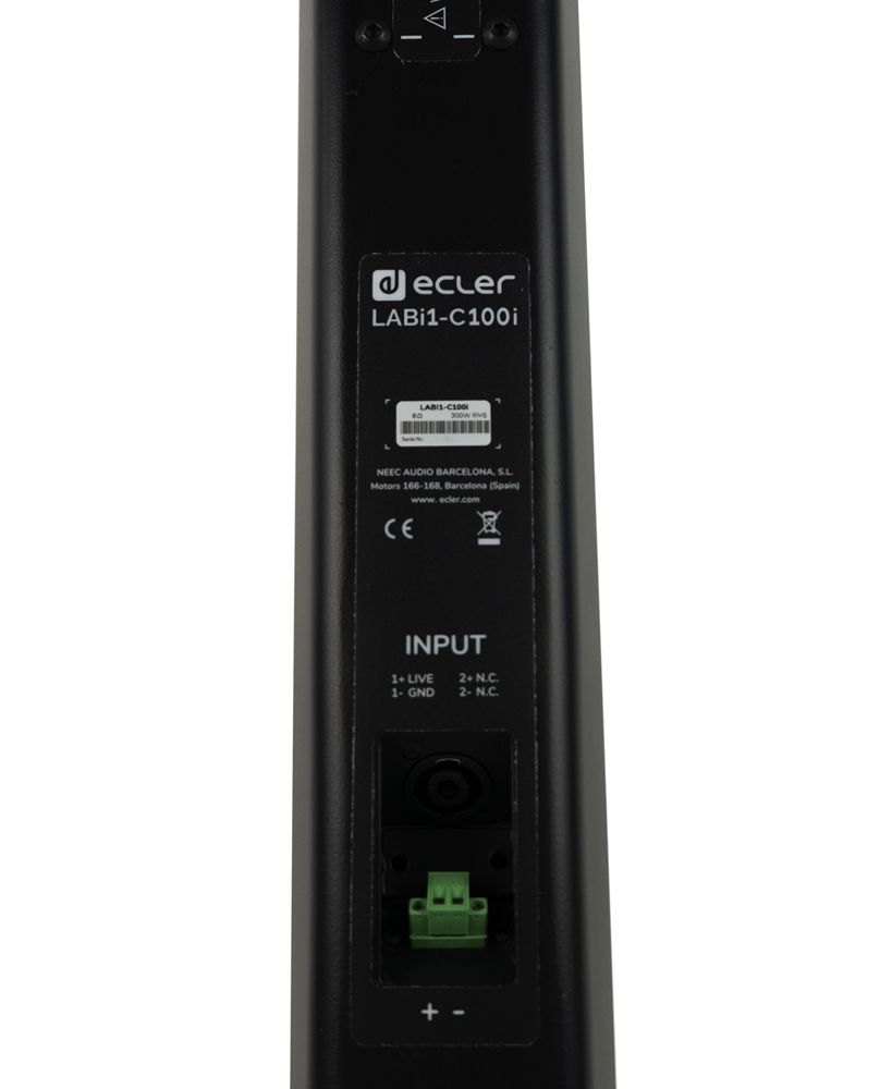 LABI1-C100i je všestranný a diskrétny stĺpový reprobox určený pre vnútorné aj vonkajšie pevné inštalácie a prenosné aplikácie. Je vybavený dvanástimi 3” meničmi s 0,75” neodýmovou cievkou, 300W AES. Jeho všestranný profil umožňuje inštaláciu stĺpa niekoľkými spôsobmi, napríklad na subwoofery LABI, na stenu, stĺp, nosník atď., vďaka príslušenstvu LABI1.