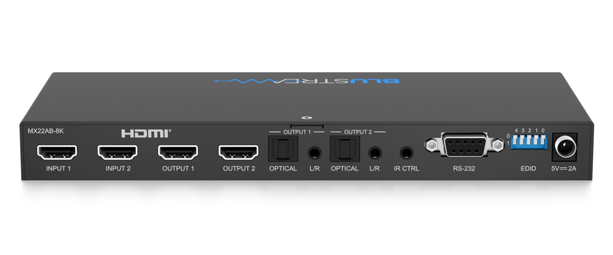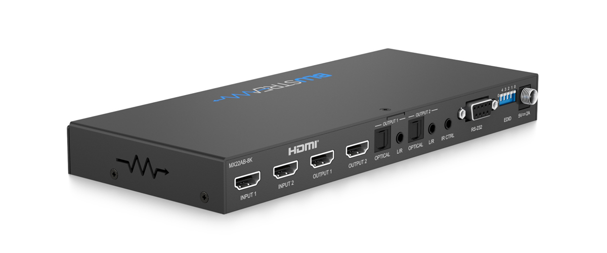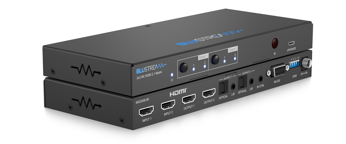 Matica MX22AB-8K HDMI2.1 integruje zdrojové a zobrazovacie zariadenia, kde sa využívajú funkcie a funkcionalita čipovej sady HDMI2.1 pre signály 8K 60Hz a 4K 120Hz. Vďaka nezávislému smerovaniu 2 vstupných zdrojov HDMI k 2 displejom HDMI2.1 sa MX22AB-8K dokáže automaticky prepínať na základe detekcie 5V hot plug alebo nového signálu TMDS; alebo sa dá manuálne ovládať pomocou RS-232, IR alebo z predného panela jednotky. Analógový a optický digitálny (S/PDIF) audio breakout umožňuje integráciu zvuku. MX22AB-8K je kompatibilný s HDCP2.3 a má pokročilú správu EDID pripojených zdrojových zariadení.
