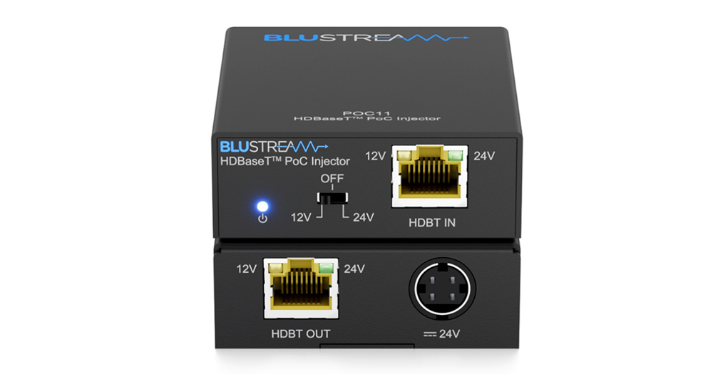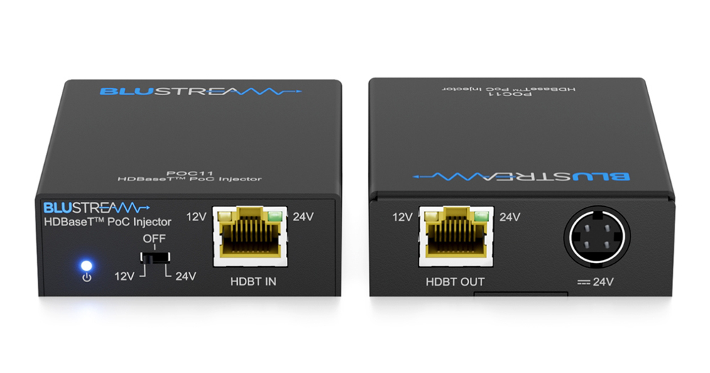 Injektor POC11 HDBaseT™ PoC je určený na diaľkové napájanie produktov Blustream HDBaseT, ktoré fungujú pomocou napájania cez kábel (Power over Cable). Po umiestnení v prenosovom vedení HDBaseT umožňuje diaľkové napájanie vysielača Blustream HDBaseT pomocou voliteľného jednosmerného napätia 12 V alebo 24 V.