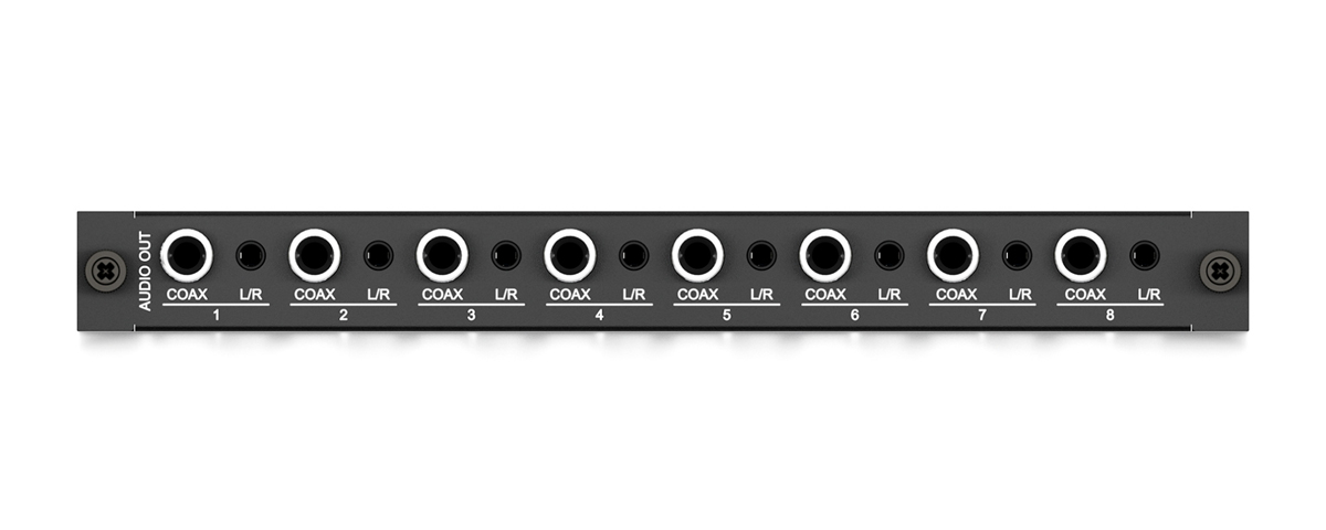 Audio breakout modul PRO-8AB ponúka 8 simultánnych koaxiálnych digitálnych a analógových L/R audio výstupov a je vybavený rýchloupínacími úchytmi pre moduly kariet, ktoré umožňujú jednoduchú inštaláciu do rozbočovača Custom Pro Matrix.