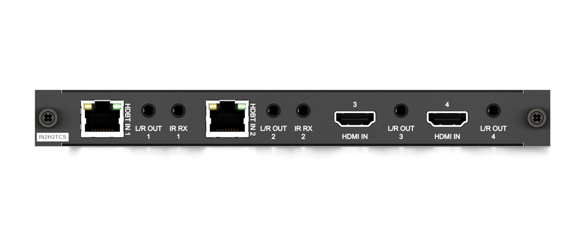 Doska PRO-IN2H2TCS obsahuje 2 vstupy HDBaseT™ a 2 vstupy HDMI 2.0 využívajúce technológiu CSC, ktorá umožňuje distribúciu signálu HDMI 2.0 4K 60Hz 4:4:4 (18Gbps) HDCP 2.2 až do dĺžky 100 m (4K 70 m). Štyri zdroje je možné nezávisle smerovať k ľubovoľnej výstupnej doske HDMI / HDBaseT™.
