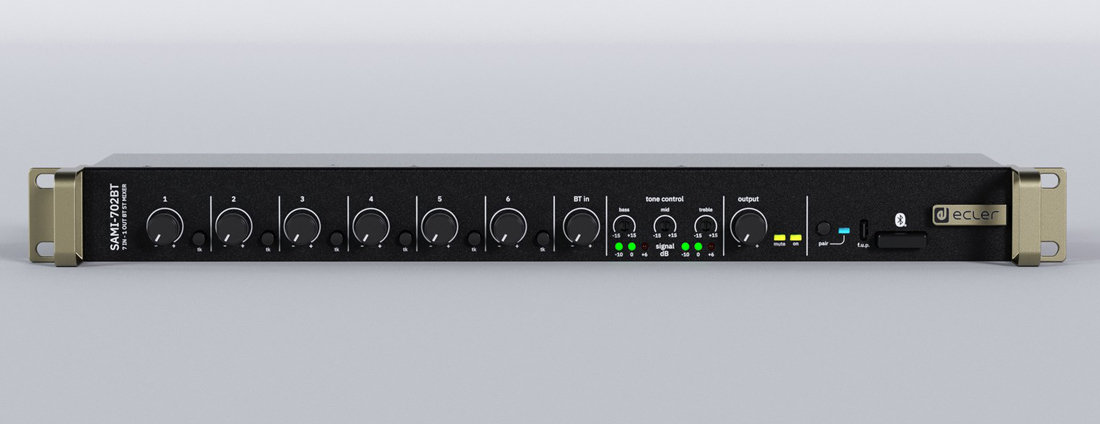 SAMI-702BT je inštalačný audio mixážny pult v štandardnom 19“ rackovom formáte so 6 stereo vstupmi MIC/LINE, 1 stereo vstupom Bluetooth®, 1 hlavným mixážnym výstupom a jedným dodatočným AUX/REC výstupom. Obsahuje 3-pásmovú sekciu korekcie tónu, funkciu Talkover (prioritná), ktorú je možné priradiť ku každému vstupu MIC/LINE cez mixážnu zbernicu, mixážny prepínač ST/MONO a port MUTE pre externé spúšťanie suchým kontaktom.
