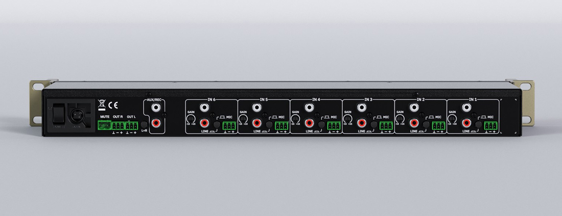 Inštalačný audio mixážny pult v štandardnom 19“ rackovom formáte
