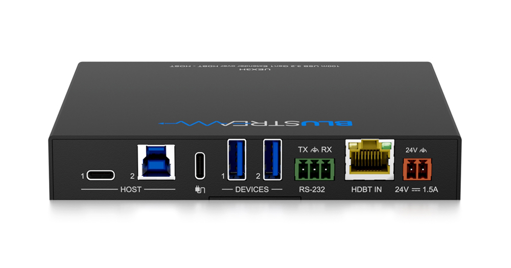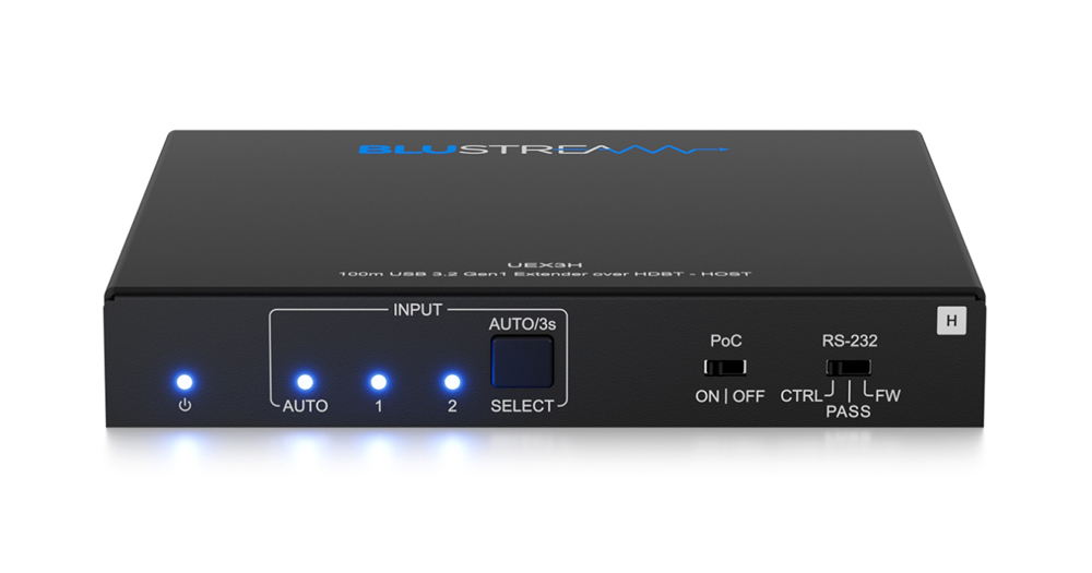 UEX3H je riešenie USB Host, ktoré využíva technológiu HDBaseT™ na vzdialené pripojenie zariadení USB 3.2 Gen1 na vzdialenosť až 100 m cez jeden kábel CAT6A. UEX3H umožňuje prepínanie 2 USB Host medzi 2 lokálnymi USB zariadeniami, ako aj zariadeniami pripojenými k vzdialene kompatibilnému extenderu vysielača (zariadenia) Blustream USB HDBaseT s podporou kombinovanej prenosovej šírky pásma až 5 Gb/s.