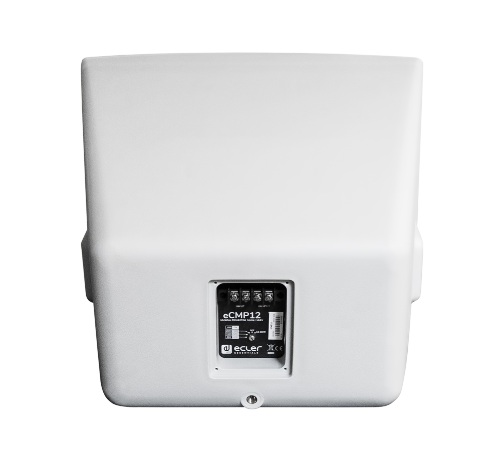 eCMP12 je vysokoúčinný projektor zvuku s výkonom 300 W, pripravený na vonkajšie použitie vďaka vodotesnému a slnečnému žiareniu odolnému materiálu (IP56).