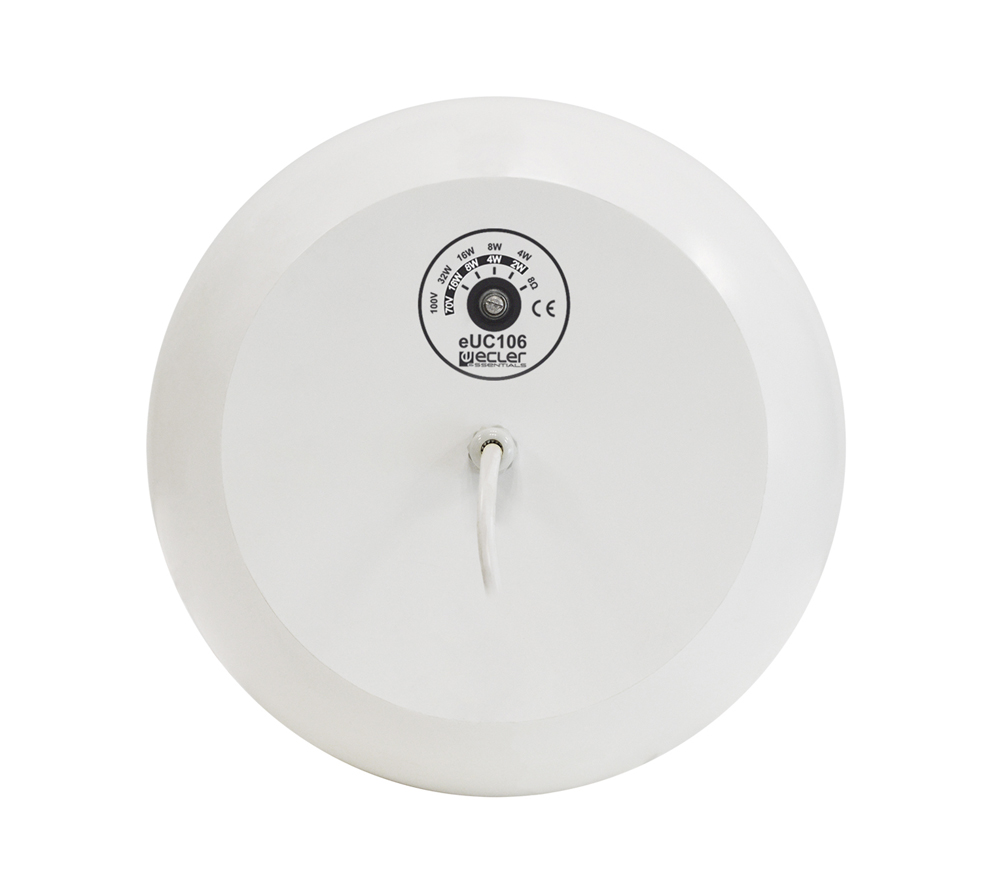eUC106 je guľovitý závesný reprobox s 6,5” basovým reproduktorom, 1” výškovým reproduktorom a transformátorom 70/100V.